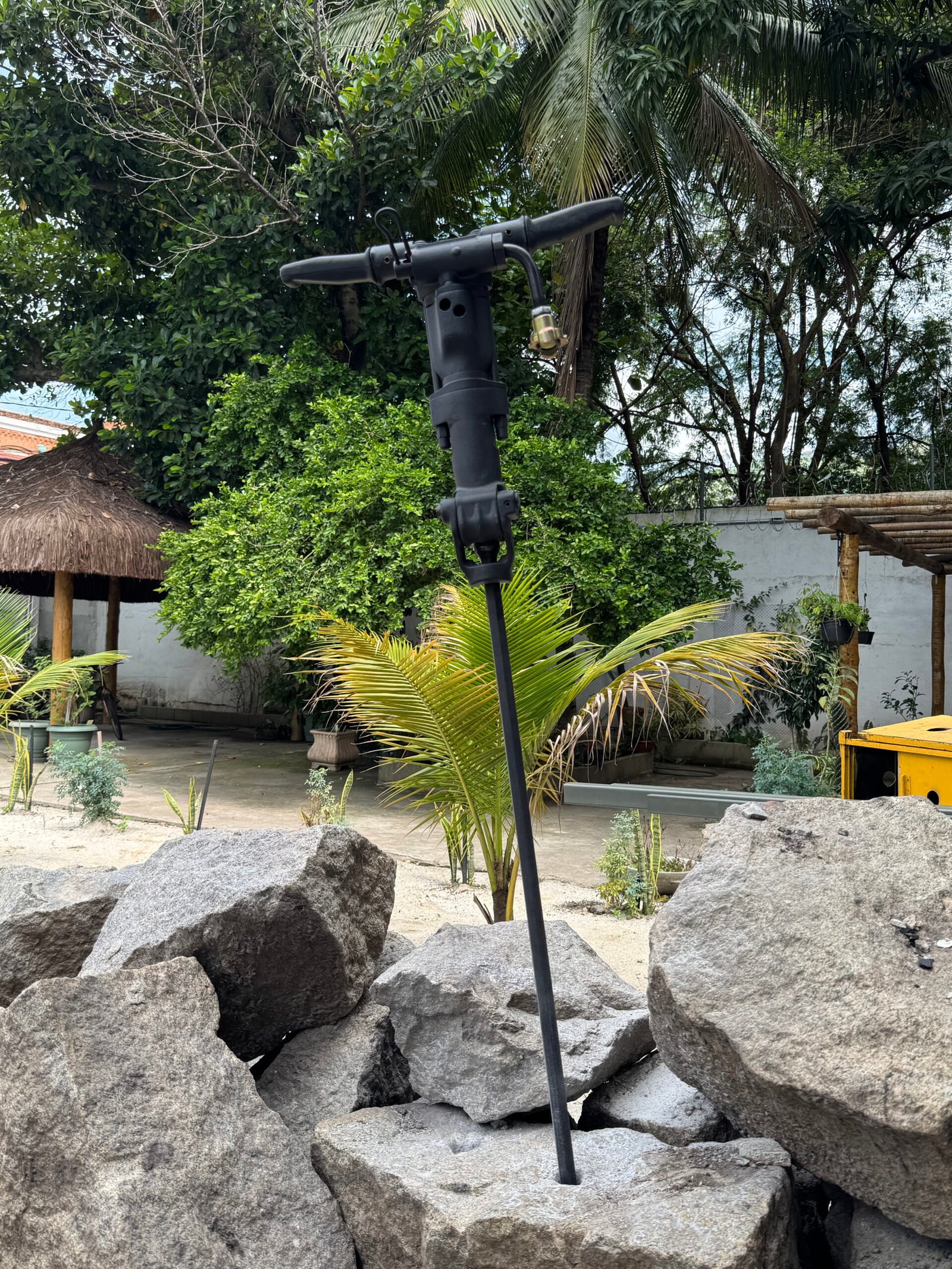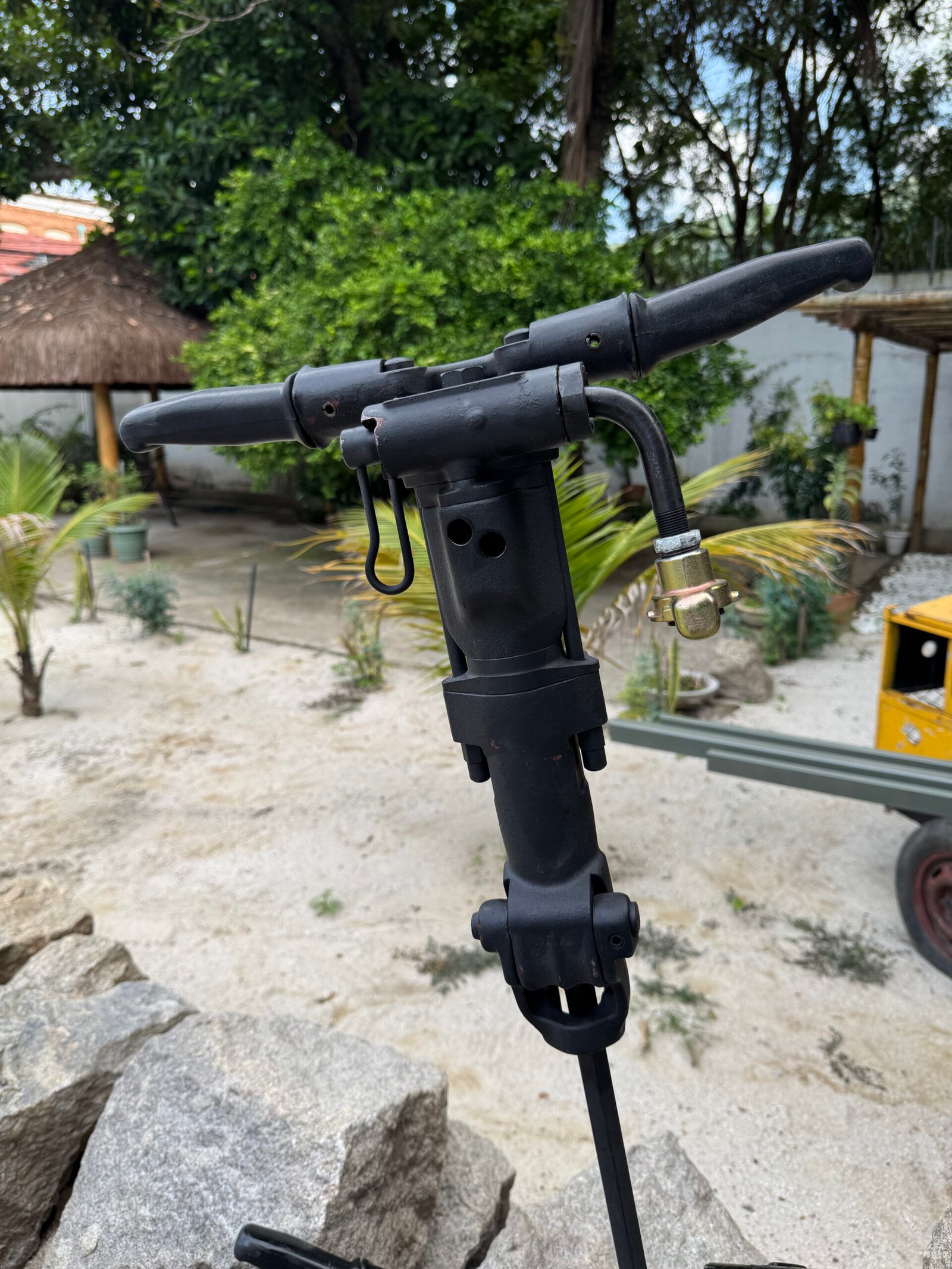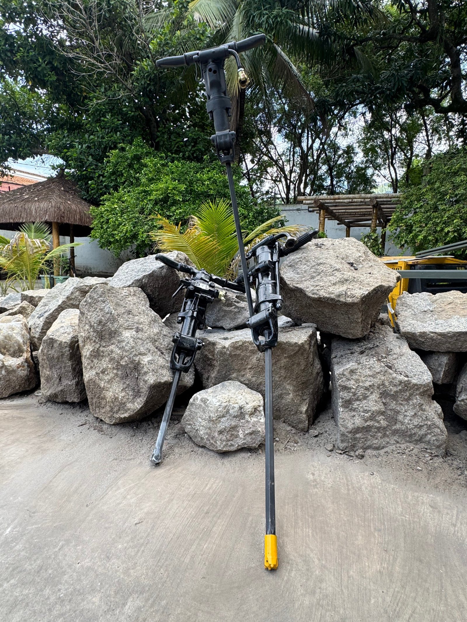 Unidade Largura de la hoja: 10 cm Comprimento: 0.435 mm A lâmina é feita de aço carbono. A forma da lâmina é plana. Ideal para trabalhos em asfalto/concreto. Conjunto punho de aço.